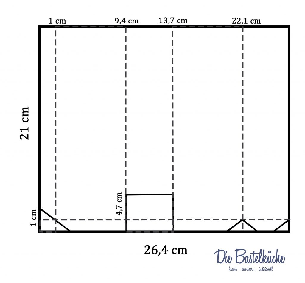 24 x 10,2 x 2,0 cm (gefalzt an der langen Seite bei 3,1 cm von jeder Seite)